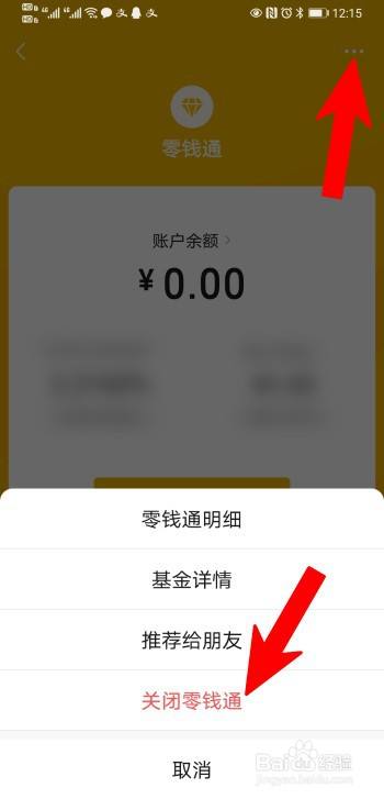 之后进入零钱通页面,点击右上3点,点击关闭零钱通即可。
