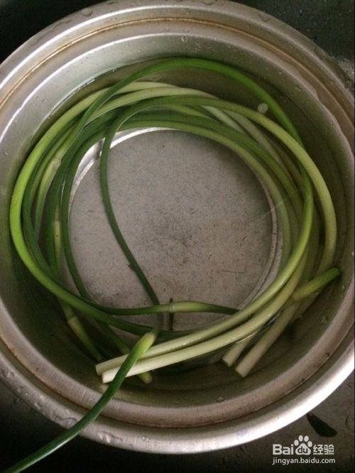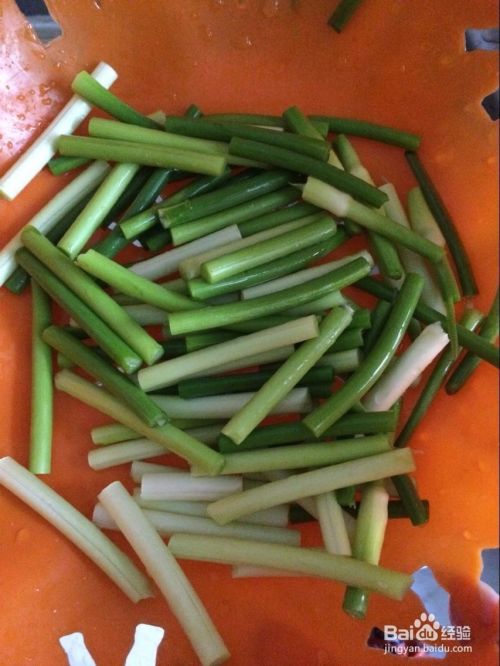 把蒜苗洗干净掰成小段。
