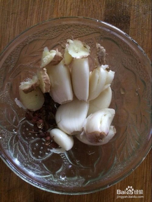 准备好大蒜瓣,花椒,姜片,等作料。