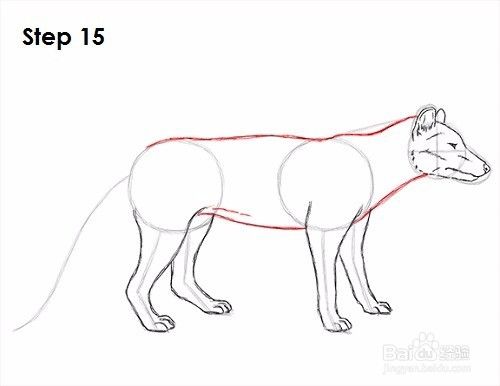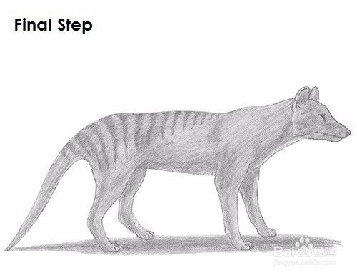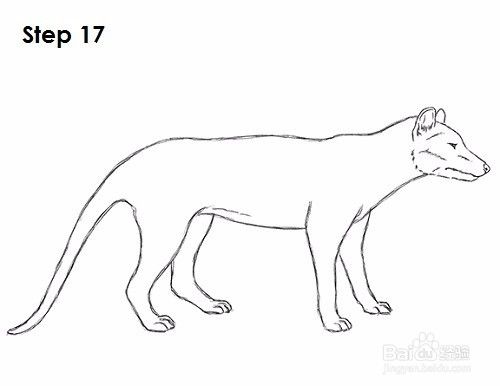 第15步:使用剩余的线作为指南来绘制身体的其余部分。只需按照指南的路线,变暗线条即可创建塔斯马尼亚虎的身体。