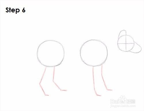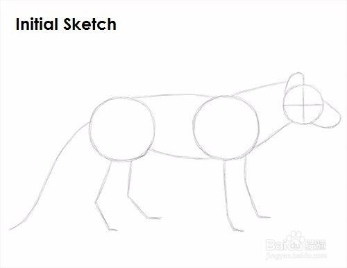 第六步:在塔斯马尼亚虎身体下画四条线(每圈下面两条)作为腿的向导。塔斯马尼亚老虎的腿并不长,所以不要划得太长。弯曲线条以指示腿部关节的位置。