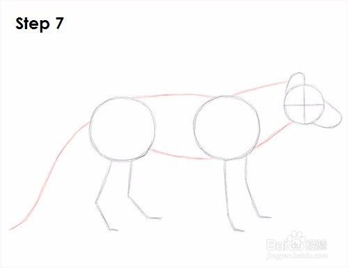 第7步:绘制一系列连接主要形状的线条作为塔斯马尼亚虎尾部其余部分的指南。塔斯马尼亚的老虎尾巴很长,所以画一条长长的线作为尾巴的指引。