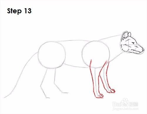 第13步:使用右侧的线作为绘制前腿的指南。在您遵循指南的基本路径时,轻轻勾画出腿部的形状。当你得到正确的腿部结构时,请将线条变暗。使用右侧的线作为指导,以相同的方式在另一侧绘制前腿。首先轻轻描绘腿部的形状,只有当结构正确时才会使线条变暗。