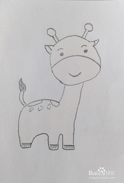 最后在长颈鹿的背上画出几个斑点出来。如图