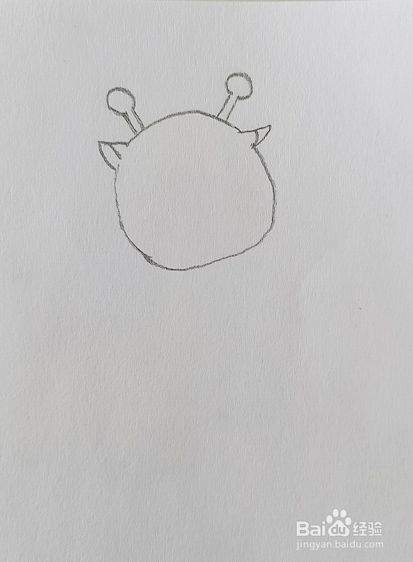 准备好以后我们先画出长颈鹿的头部和耳朵,如图