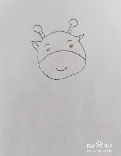 画好以后我们画出长颈鹿的眼睛和嘴巴,如图