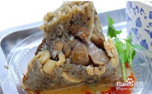 厦门的1980烧肉粽是一定要吃的,作为店名肉粽自有它独到之处,刚上桌的肉粽热气腾腾,用筷子戳开后可以看到内馅丰富,有五花肉、虾仁、香菇、板栗、咸蛋黄,拌上甜辣酱和花生酱味道更香。