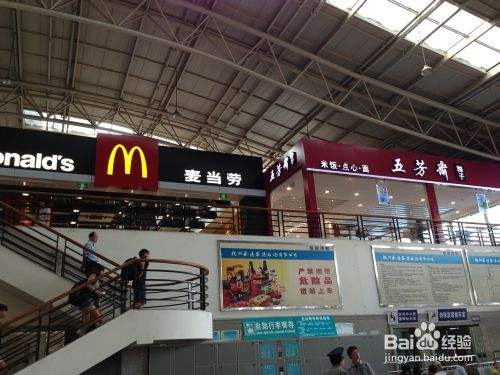 汽车站里有麦当劳和五芳斋,干净卫生,价格和外面是一样的。