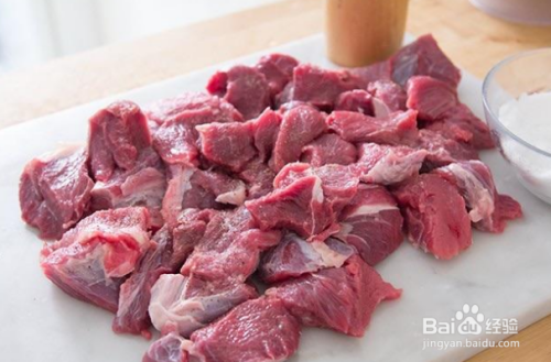 将牛肉切块,洗干净放在一边备用,如图所示。