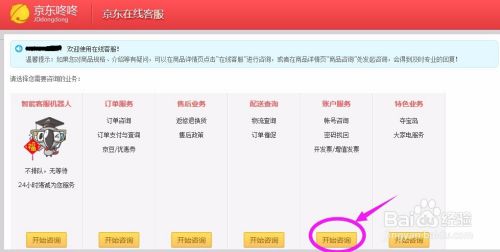 出现以下界面后,点击“账户服务”下的“开始咨询”