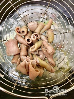 鹅肠用筛烫,不断用筷子搅拌