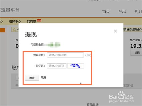 输入提现金额和验证码,点击确定按钮,如图