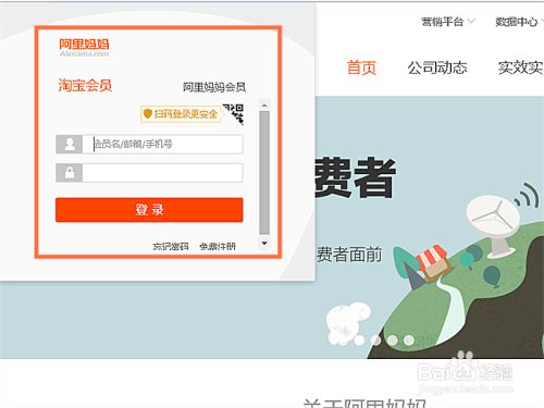 打开阿里妈妈,输入淘宝账号或阿里妈妈账号,点击登录按钮,如图