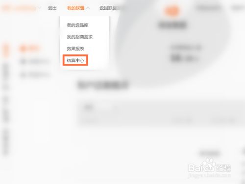 点击我的联盟下拉按钮中的结算中心,如图