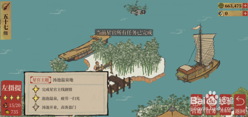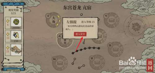 打开江南百景图游戏,进入鸡鸣山左摄提星宫,完成剧情和主线任务,建造娱乐建筑,成功三星过关。