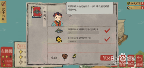 完成最后一个任务,建一个温泉和道路,关卡总繁荣度达标。
