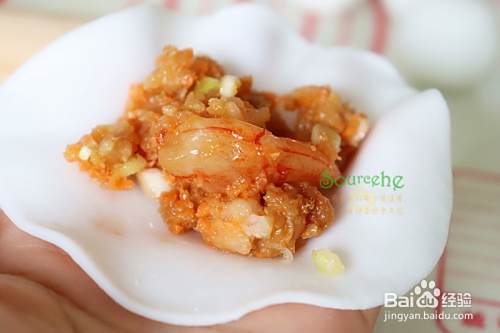 1.水晶虾饺里的虾仁,三分之一切段,不仅好看,也好吃,如果全部剁碎,失去鲜美的口感。