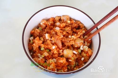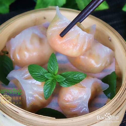1.水晶饺子皮:小麦淀粉;饺子馅食材:虾仁、猪瘦肉、胡萝卜;饺子馅调料:盐、油、酱油、葱白、生姜。