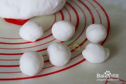 5.面团揉至不沾手,盘子也是光滑的,揉好的面团分15克一个,并且揉光滑