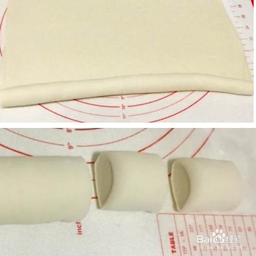 如果是刀切,可以直接搓成棍子状切一切。也可以如图,案板撒粉以后,将面团擀成一个大大的面片,然后卷起来,切成段就是刀切。小秘密: 切面不会变大,所以切成正方形或者如图的形状发酵后才不会东倒西歪。