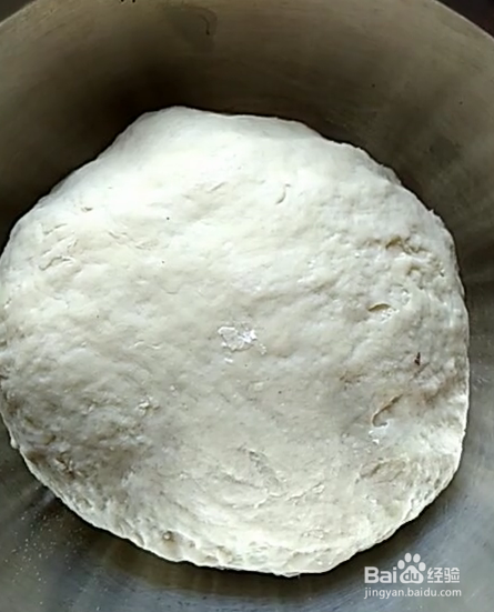 搅拌均匀,倒入面粉中,把面粉揉成面团;