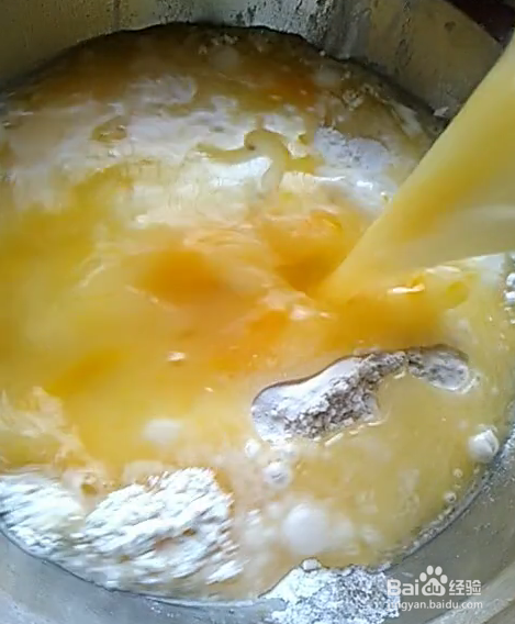 5g泡打粉,2g盐,15g食用油,打入一个鸡蛋;