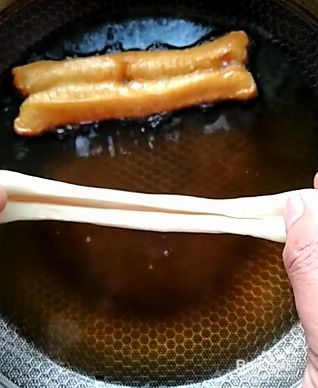 锅内放油,油温7成热,把长条放入锅中,炸至外表金黄即可。