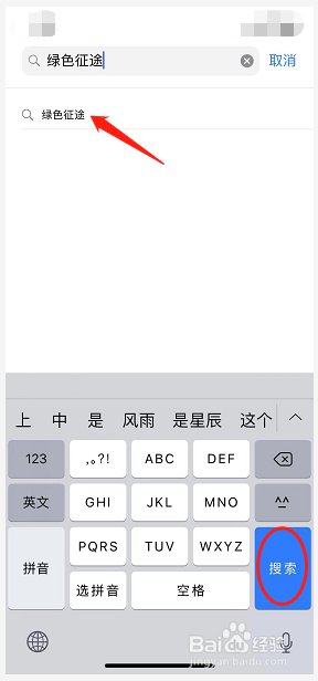 然后进入搜索界面,在搜索框内输入绿色征途的文字内容,点击搜索。
