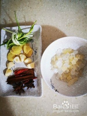等待撩水的时候可以准备配料了,把葱姜蒜,八角,桂皮,干辣椒洗净,冰糖尽量小一点,比较容易化开。