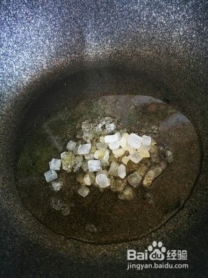 锅烧热,放入油。小火加入冰糖熬化,熬焦糖是为了上色更好看,一定小火,不要熬过了