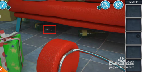 点击红色的沙发,取出下面的灯泡。