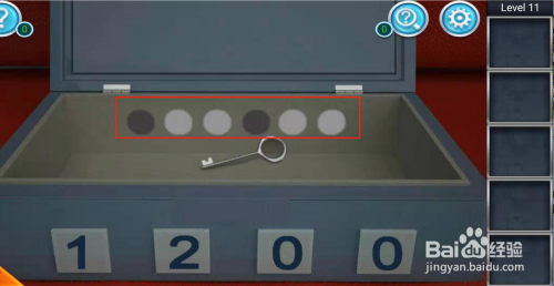 点击沙发下面的小箱子,输入密码1200,取出钥匙,记住红框标记出的提示。