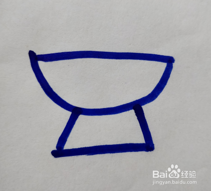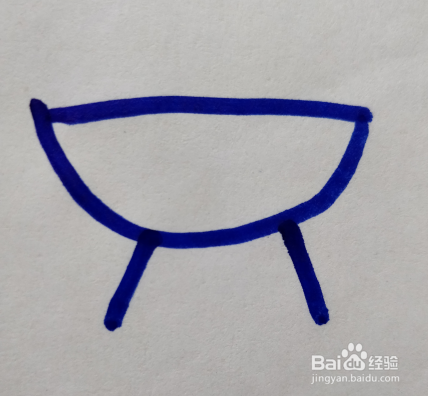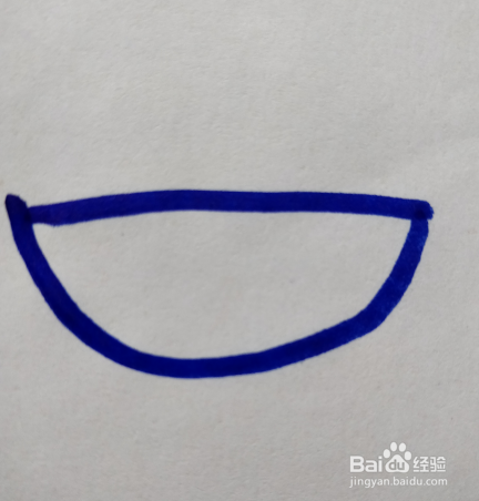 在第一笔直线的上面,画上一个向下弯曲的弧线。弧线端点落在直线的内侧。