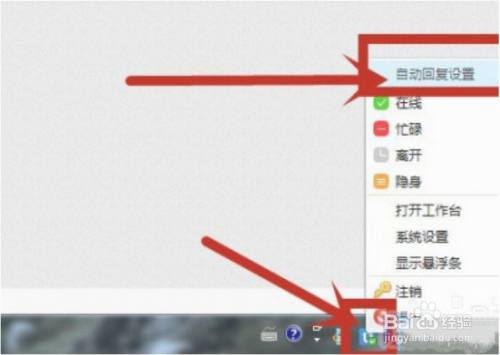 鼠标移动到电脑任务栏中的千牛图标,并右键点击,选择“自动回复设置”并进入;