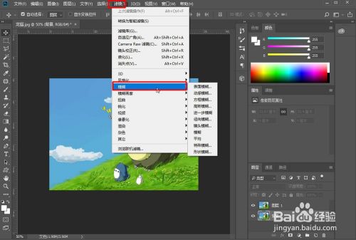 点击菜单栏中的“滤镜”按钮,在下拉菜单中选择“模糊”。
