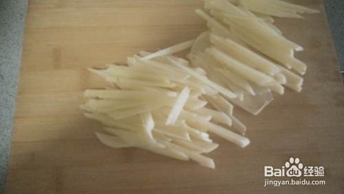 首先把土豆去皮,洗干净,切成细细的小丝,细的会比较容易入味。