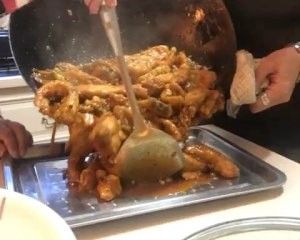 使劲翻炒后,再加一点山胡椒.继续翻炒