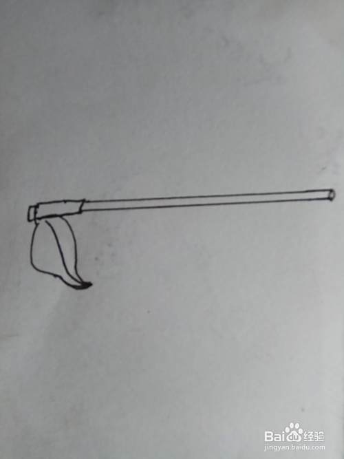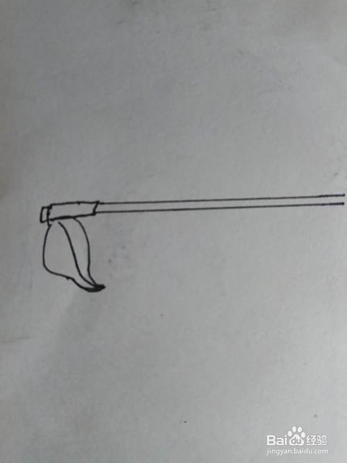 在上面画出两条线段,这是把手和头部相接的地方。