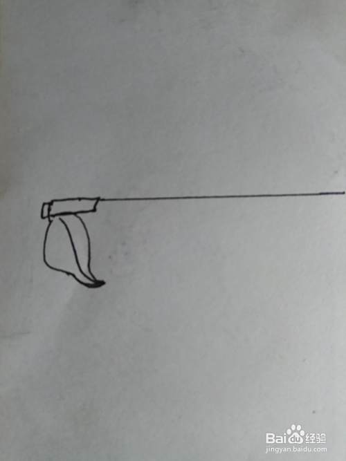 向右延伸出一条线段,如图所示,这是把手的一部分。