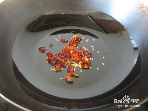 锅里倒油烧热后,放干红椒