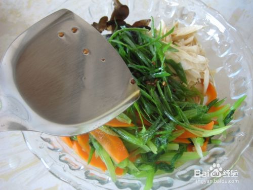在菜上面淋上锅里的辣椒油