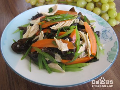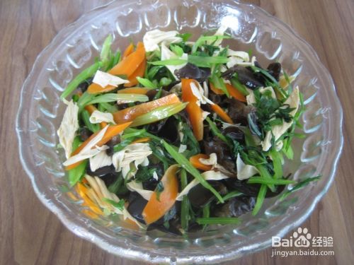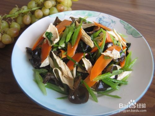 这是一款比较经典的家常凉拌小菜,芹菜有很好的降压功效,黑木耳可以清肠排毒,胡萝卜对保护视力很有好处,加上腐竹的调剂,味道非常爽口。