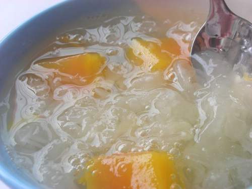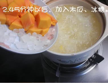 3银耳小火炖45分钟后,加入木瓜、冰糖
