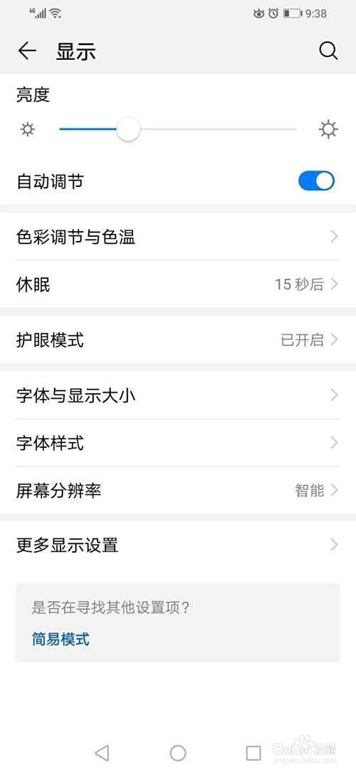 进入到设置界面后,找到第四行的显示这一栏,点击显示后匠塑,进入到显示设置界面。