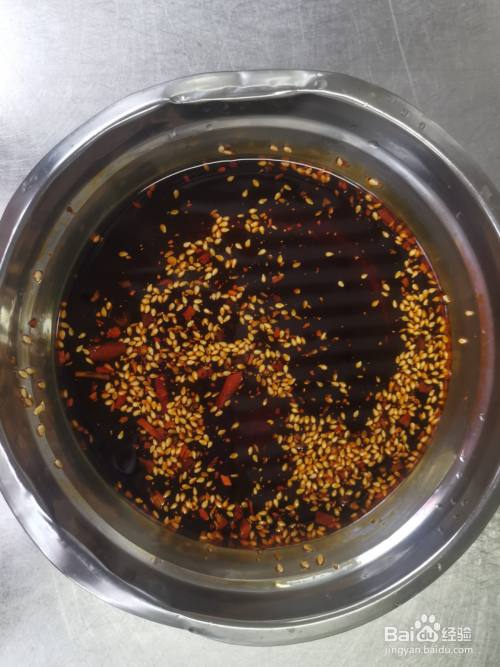 提前熬好红油:锅中倒油少许下辣椒花椒小火炒出香味后捞出,把炒好辣椒打成粉末装盆里撒上熟白芝麻,把菜籽油烧热加姜片, 葱,八角,桂皮,草果,香果,干草,小茴香,山奈榨干后捞出,油温五成热时慢慢边倒入辣椒面边搅拌,使辣椒面均匀受热后放置4小时即可用