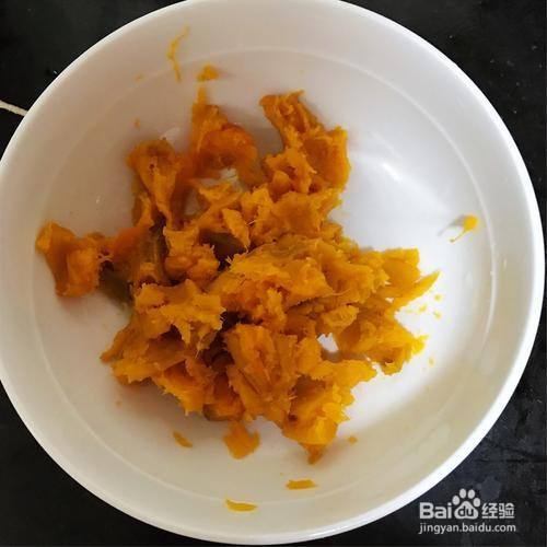 蒸好的红薯,趁热剥皮,放凉后捏成泥。