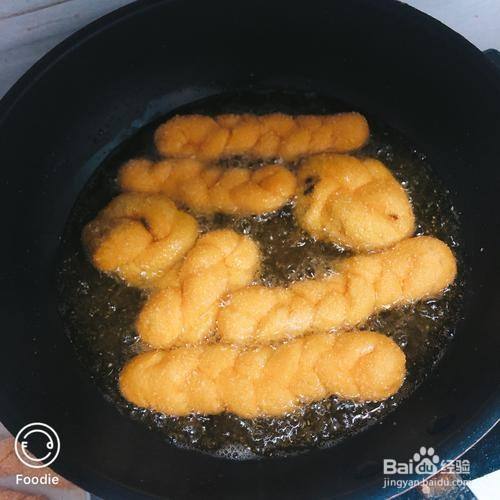 锅内放入适量油烧开后,放入麻花榨汁金黄,捞出沥油。