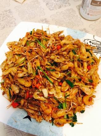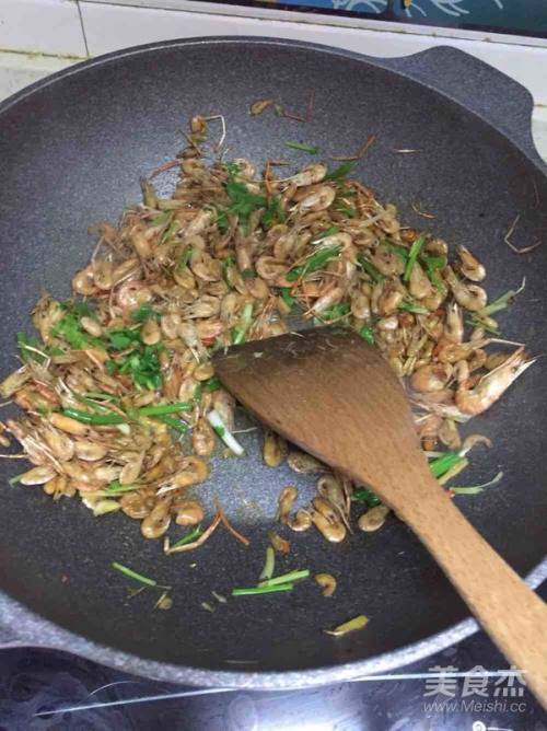 3虾倒入锅里,放入料酒,盐,鸡精,生抽,耗油,加入适量水,翻炒一分钟,放入小葱和香菜,再翻炒一分钟出锅