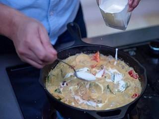 加入食盐、黑胡椒和奶油,炒匀。