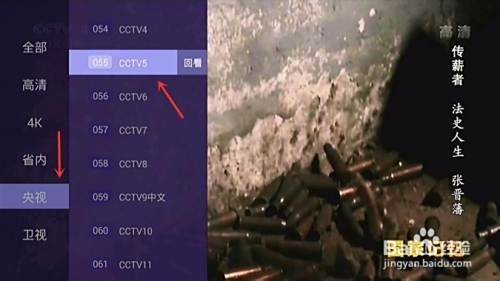换台按下iptv遥控器中间的“ok键”,然后选择“央视”-“cctv-5”。
